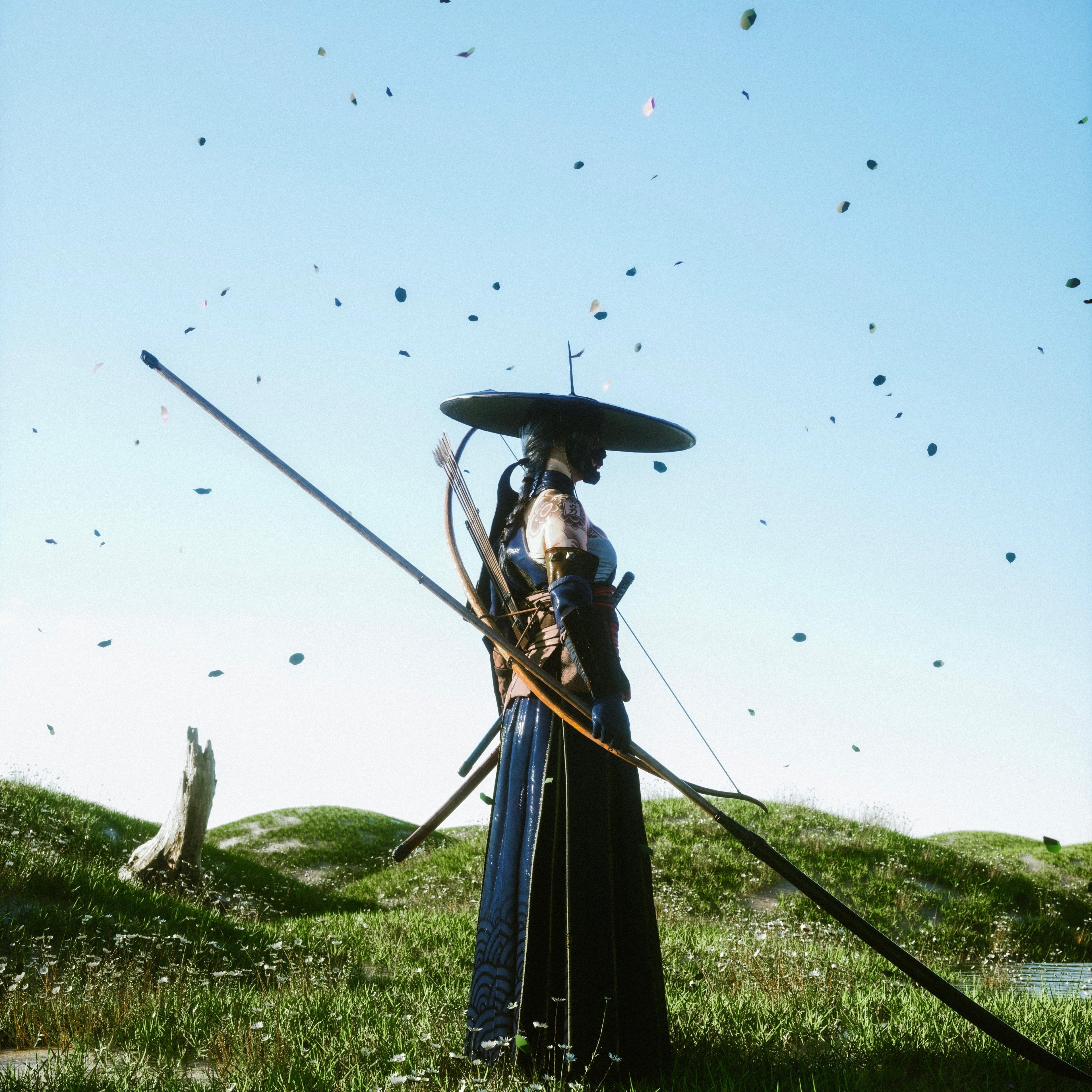 A warrior can have different stylizations depending on the context in which we want to show him. They may be in full full combat armament or wear a traditional kimono. Some depictions of the samurai show their distinctive straw hat, which gives them a recognizable appearance.