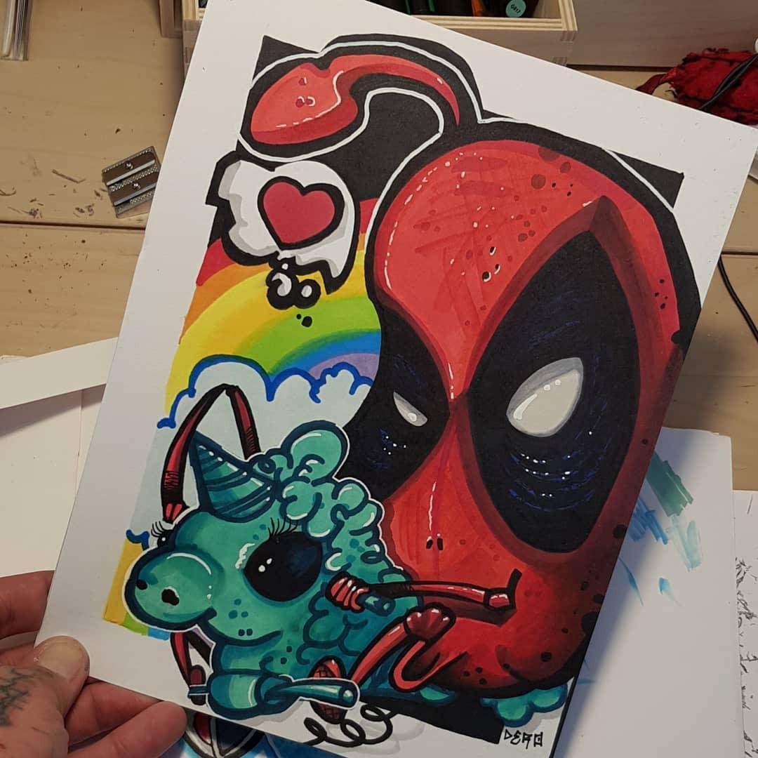 Deadpool pear @gruchan 💥🍐💥 #deroschool #deadpoolpear @arbuztattoo #deadpooldrawing #drawings #promarkers #cartoondrawing #cartoon #instadrawing #isntagood #instafalow #unicorn @deadpoolmovie @artreyan