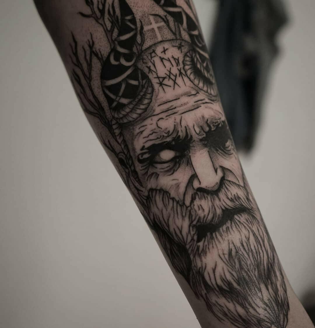 Mimir nordycki bóg inspirowany postacią z gry The God of War w mrocznym wydaniu 🖤 To była czysta przyjemność tworzyć ten tatuaż dzięki za zaufanie przy pierwszej dziarce @marciniunio 😊 Zapraszam są jeszcze terminy w tym miesiącu ✌ #mimirtattoo #nordictattoo #darktattoo #thedarkestwork #dotworktattoo #dotwork #blackworktattoo #blackworkers #thegodofwar #mimirgodofwar #godofwarmimir #blacktattoo #polandtattoo #polandtattoos #tatuazepolska #tatuaze #tattooformen #vikingtattoo #darktattoo #darktattoodesign
