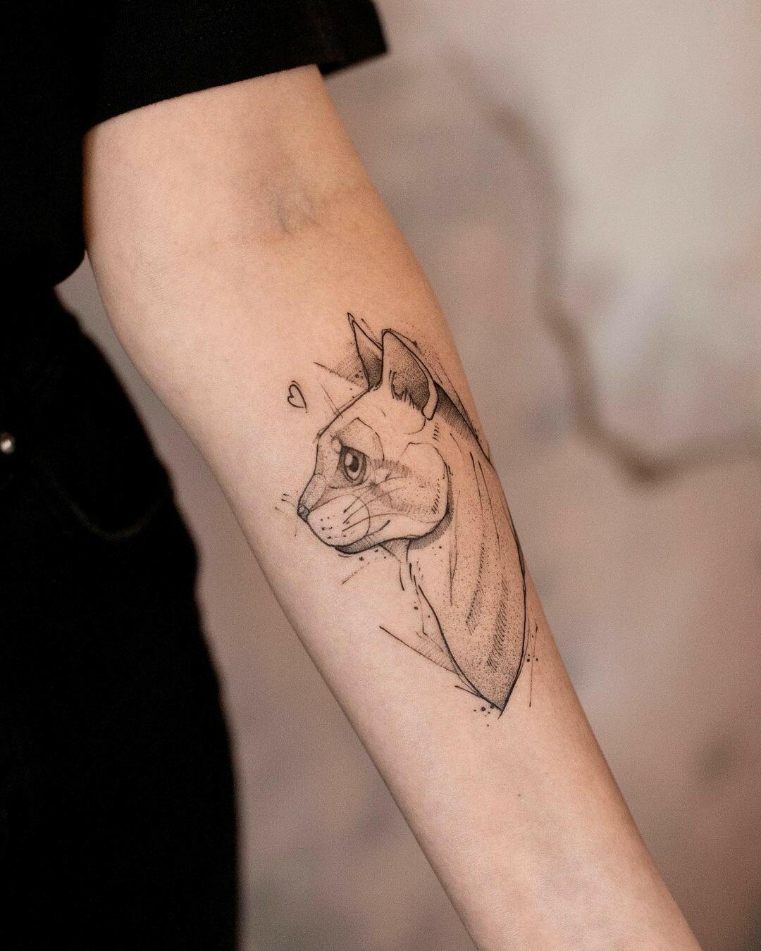 Kitku🐱 Na ostatnim zdjęciu możecie zobaczyć już wygojony tatuaż✨ #cattattoo #cat #kittytattoo #kitty #kittylove #catlover #animals #animaltattoo #bestfriend #bff #sketchstyle #sketchstyletattoo #sketchtattoo #ilustrationtattoo #graphictattoo #tattooidea #tattooinspiration #brainatattoo #braina
