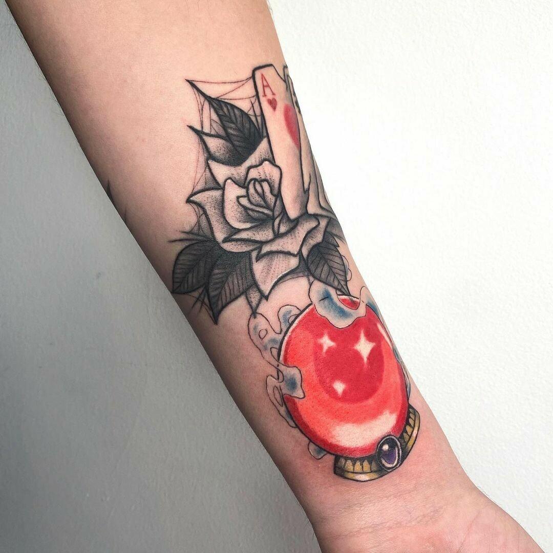 Cover 🕸🕷🌹🍭 . . . . #covertattoo #cover #colorful #colortattoo #wizard #rosetattoo #spiderweb #webtattoo #poznan #poznań #poznantattoo #polandtattoos #cardtattoo #magicballtattoo