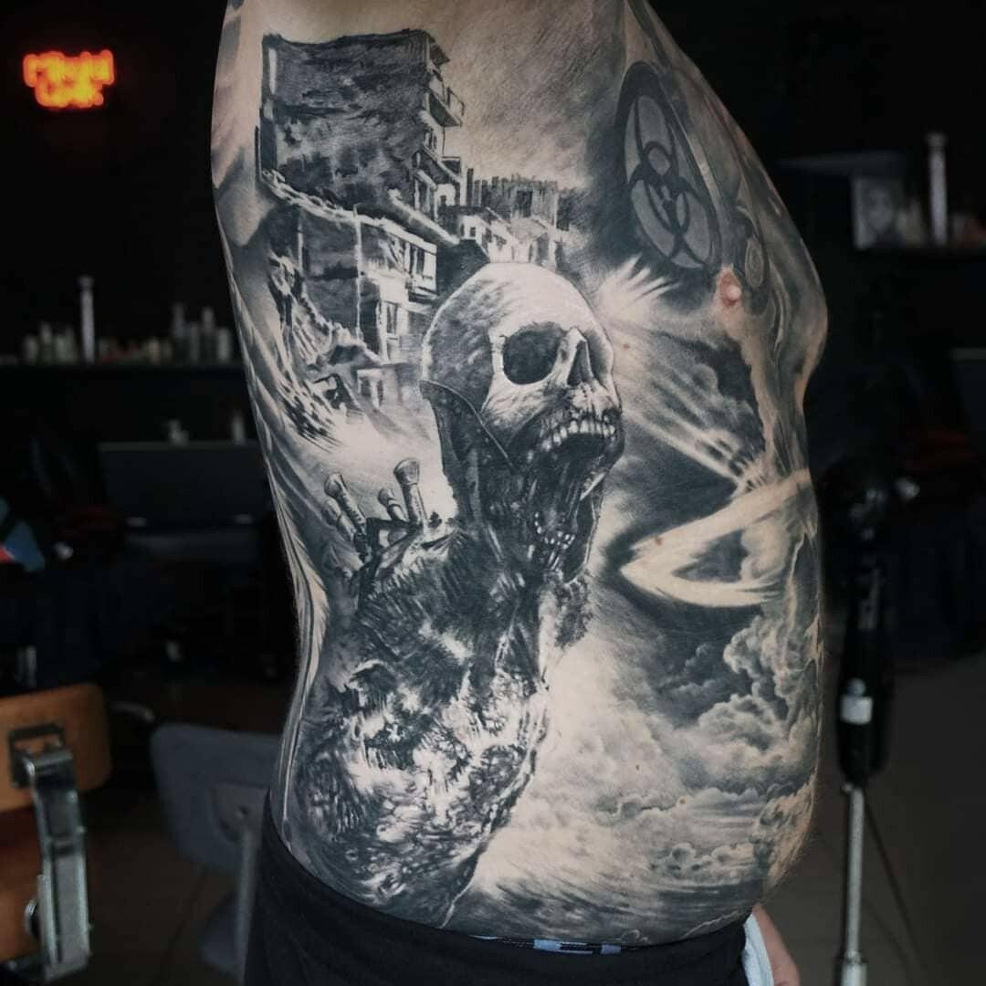 #blackandgreytattoo #blackandwhite #wroclawtattoo #tattoo #inked #posrapocalypsys #skulltattoo #skull