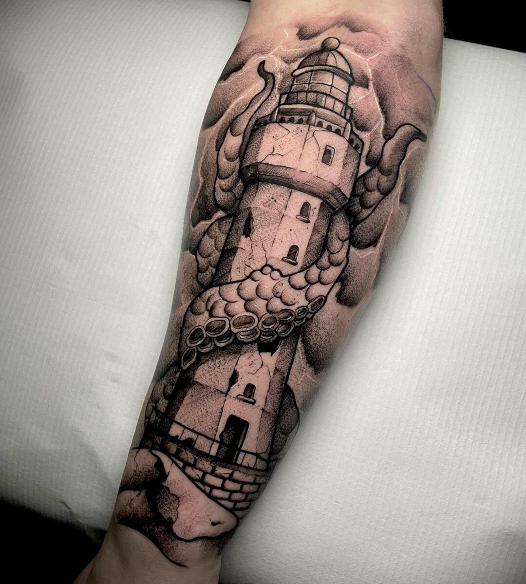 🌊🌊 wyk. @maslak_tattoo . . . #lighthouse #lighthousetattoo #tatt #tattoo #tattooart #tattooartist #tattooboy #nebapl #nebasklad #poland #polandtattoos #vapertattoo #inksearch #inksearchtodo #tattooshop #tattoolife