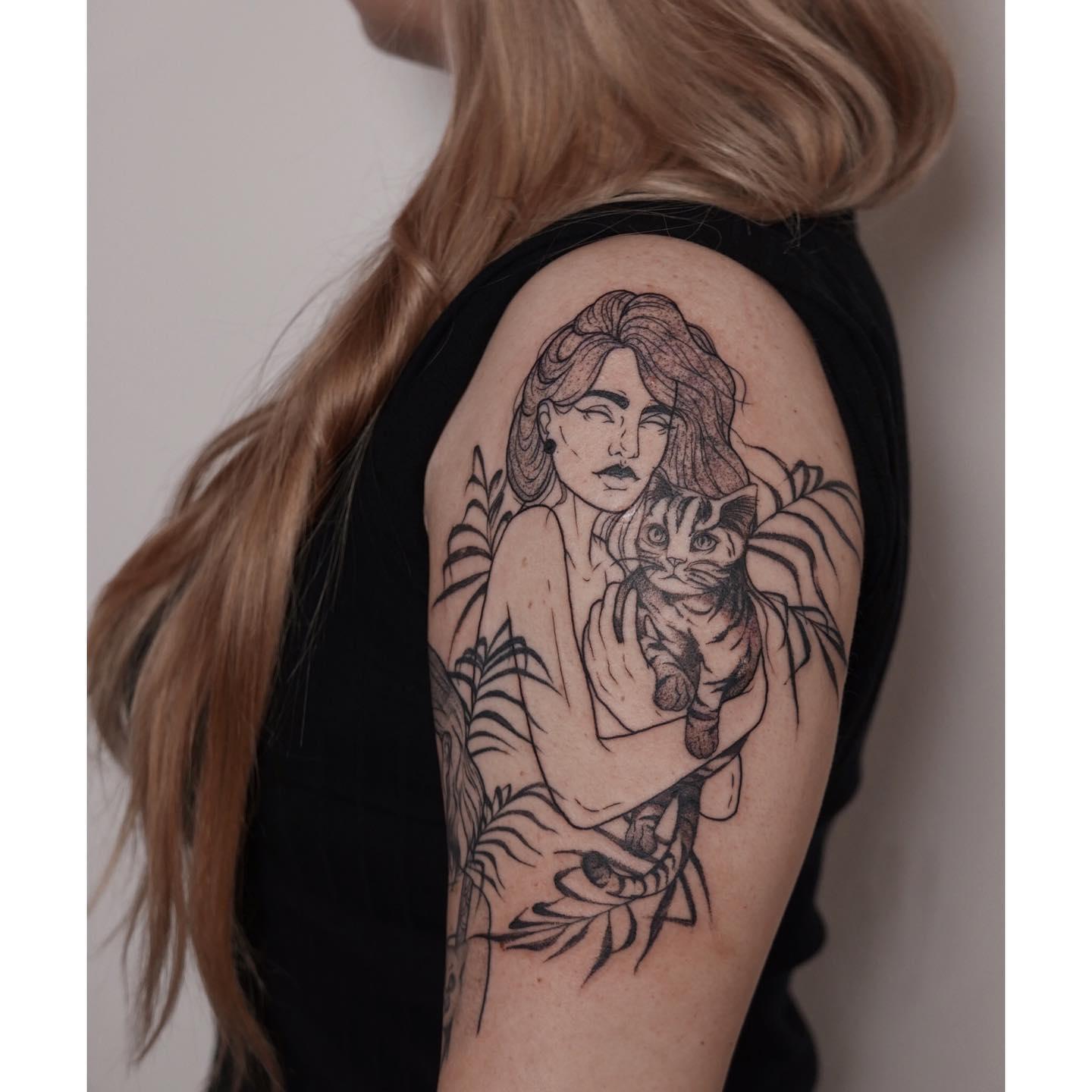 #cattattoo #catlover #botanicaltattoo #flowertattoo #dotworktattoos #lineart #tattoo #tatuajes #dotworktattoo #tattooselection #equilattera #blxckink #blackwork #blackworkerssubmission #inked #tattoolife #tattooartist #tattooer #tatouage #mavkatattoo
