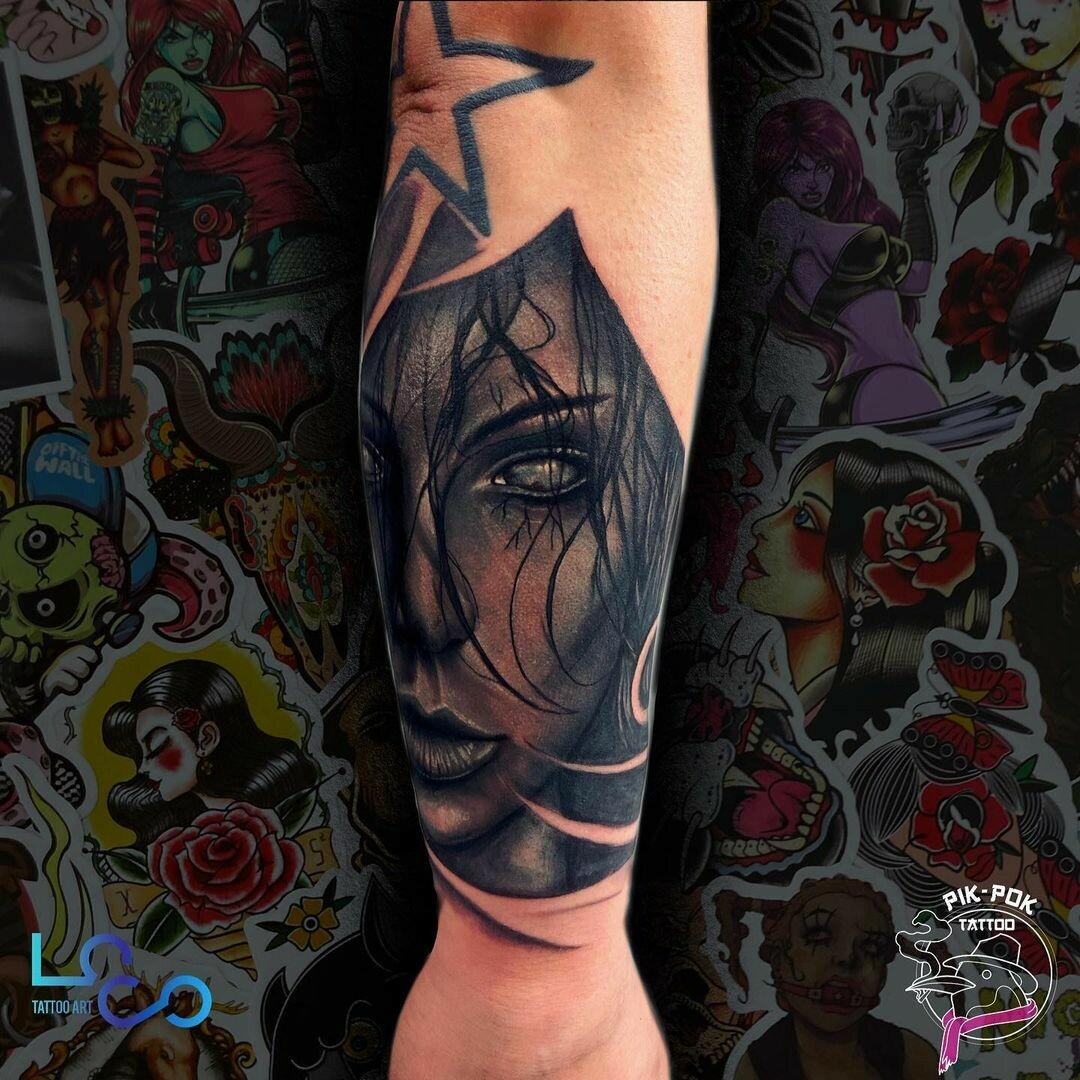 Siemka ! 😁 Dziś dla was mam dziarkę w stylu realistycznym 🔥 Twarz mrocznej kobiety 🙃 📌 zapraszam do zapisów poprzez: 📩 Fb studia Loco Tattoo Artt 📫 Ig studia @locotattooart_studio 📧 📞 + 48 📌Oraz do odwiedzenia studia osobiście: Loco Tattoo Art Zgoda 30B 60-122 Poznań No i wpadajcie do moich ziomków @usage_von_pigeon @eva_konashevsky @ink4u_clothing #poznantattoo #polandtattoo #polishtattooartist #tattoo #tattooartist #tattooinspiration #tatts #inked #loveink #forearm #forearmtattoo #realistic #realistictattoo #blacktattoo #womentattoo #kreepytattoo #face #facetattoo #pikpoktattoo #pikpokart #inksearch