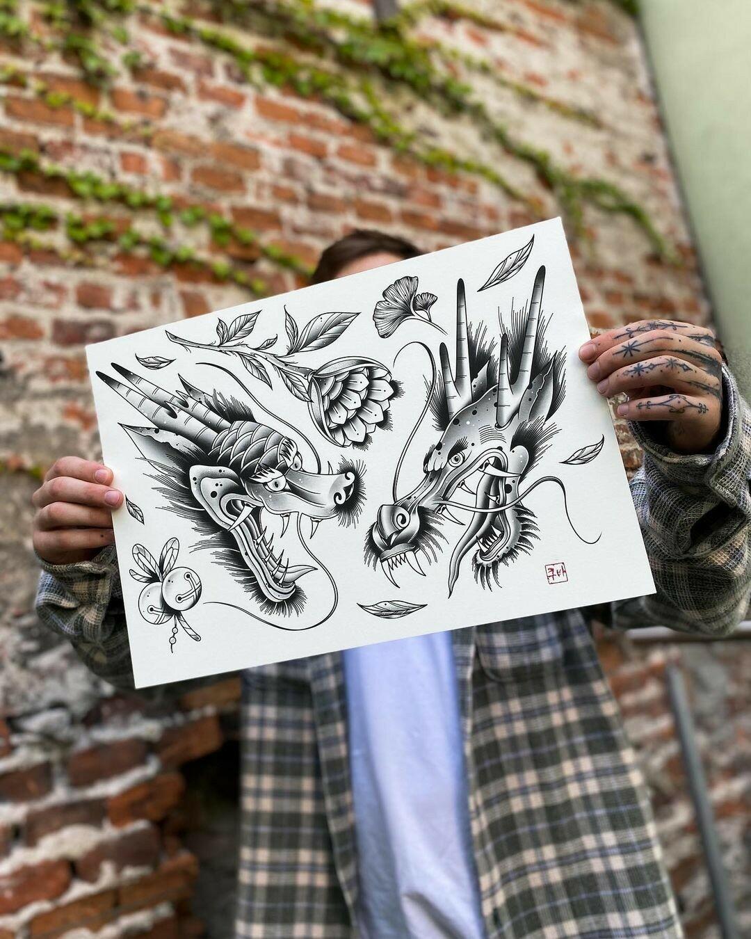 Halo Śląsk! 🐲 We wrześniu mam przyjemność gościć w dwóch śląskich studiach, z tej okazji kilka wolnych wrzutek do wzięcia. @boomerang_tattooshop Gliwice ⚜️ Katowice 👁 Mam jeszcze kilka wolnych miejsc, więc serdecznie zapraszam. Chętnie wykonam Wasze pomysły jak i coś z moich wolnych wzorków. 👌🏼 Na codzień spotkacie mnie oczywiście w w Krakowie, ul. Berka Joselewicza 22 ⚜️ ************ #tattooinspiration #tattooflash #tattooidea #japanesetattoo #dragontattoo #asiantattoo #tattooprint #freedesign #dotworktattoo #dotworkers #guestspottattoo #katowicetattoo #polandtattoos #inked #tattooartist #tattookonwent #artist #leszczyński