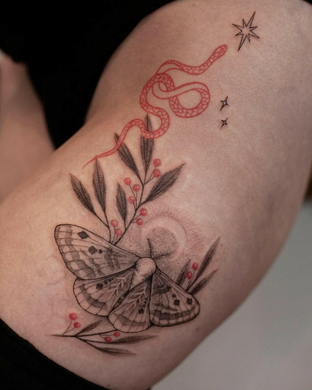 Wykonanie @magdalena_otys_tattoo 🌙 #snypracownia #mothtattoo #tattooed #tatuaze #tatuażewarszawa #studiotatuażu